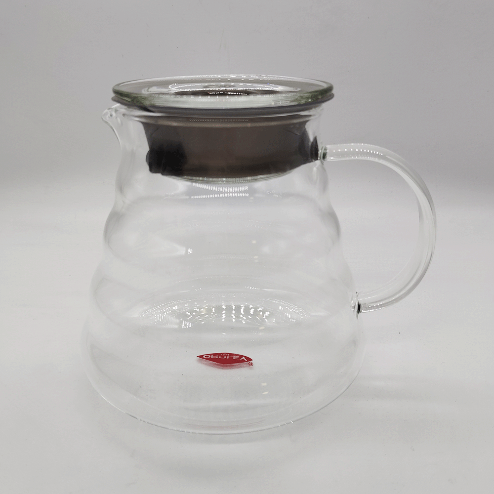 Jarra de vidrio borosilicato resistente a golpes y cambios de temperatura, con filtro y tapa de acero inoxidable. 600 ml de capacidad.